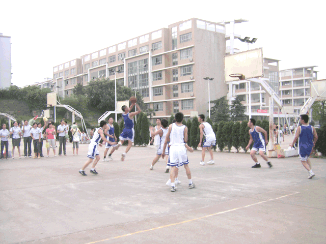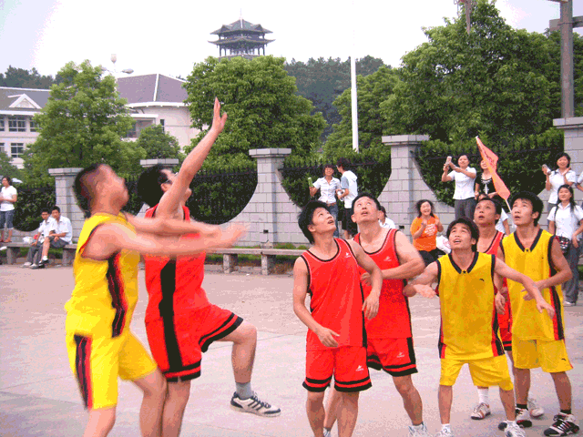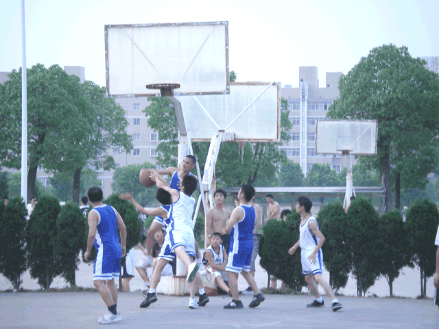 流火的8月,我们的队员们发扬了艰苦拼搏的体育精神,场场比赛激烈精彩,其中雄鹰队与超越队的那场比赛,更是扣人心弦,两强相遇,比分一直咬得很紧,超越队针对雄鹰队主力李佑喜欢打快攻,投篮命中率高的特点制定了三人盯防的策略,最后在全体队员的完美配合下,以17:11的比分赢得了比赛的胜利。这场篮球比赛中,队员们不抛弃不放弃、团结协作的精神,让我们感动。例如火箭队,主力队员黄飞受伤不能继续参赛,在后来的两场比赛中他们没有放弃,继续顽强拼搏,虽然他们输掉了比赛但是赢得了大家的尊敬。陈浩、李泽阳、肖炎等在激烈的比赛中不同程度的负伤,但是他们仍然坚持到了比赛的最后一刻!