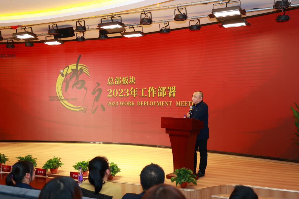 3、规划新征程 开启新篇章:会上,麓辰教育集团董事长易军对2023年的战略规划进行了发布:以直营为基础,学校为龙头,在职教育与加盟合作为两翼,一点突破,全面繁荣!明确2023年的文化主题词为:成长、承担、更高效;健康、快乐、向“钱”冲!同时,他也对各板块新一年的重点工作进行了部署。