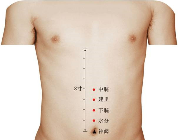 配穴:中脘、神阙、脾俞、胃俞、足三里