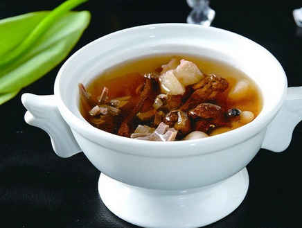 【制法与用法】清水洗净枸杞子。猪肝、生姜分别用清水洗干净。猪肝切片,生姜去皮切2片。先将枸杞、生姜加适量清水,猛火煲30分钟左右。改用中火煲45分钟左右,再放入猪肝。待猪肝熟透,加盐调味即可。早晚各一次。