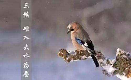 一候水始冰;二候地始冻;三候雉入大水为蜃。”此节气水已经能结成冰;土地也开始冻结;三候“雉入大水为蜃”中的雉即指野鸡一类的大鸟,蜃为大蛤,立冬后,野鸡一类的大鸟便不多见了,而海边却可以看到外壳与野鸡的线条及颜色相似的大蛤。所以古人认为雉到立冬后便变成大蛤了。