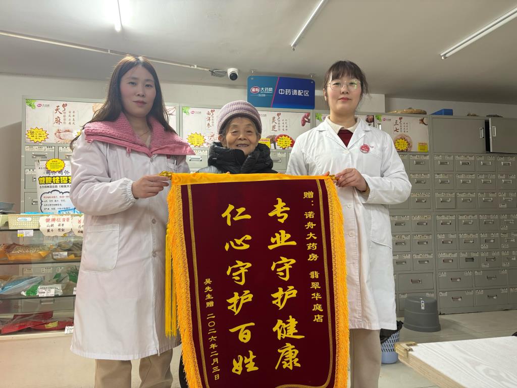 事情要追溯到2024年春季,这位吴帅哥有肩颈病,加上长期劳损让肩颈和右手臂的胳膊疼得非常厉害,我们夏药师给他介绍了门店是骨健康项目门店,为他进行专业的骨健康诊察、调理,结合一系列的按揉、拔罐、膏药贴敷再联合药物治疗,没过几个月,他的肩颈和胳膊疼痛明显减轻,睡眠质量也得到了提高!他自己经常调侃说:都成了门店的长期粉丝啦! 为表示感谢,特意叫她妈妈送来锦旗!感谢翡翠华庭诺舟大药房所有人员!