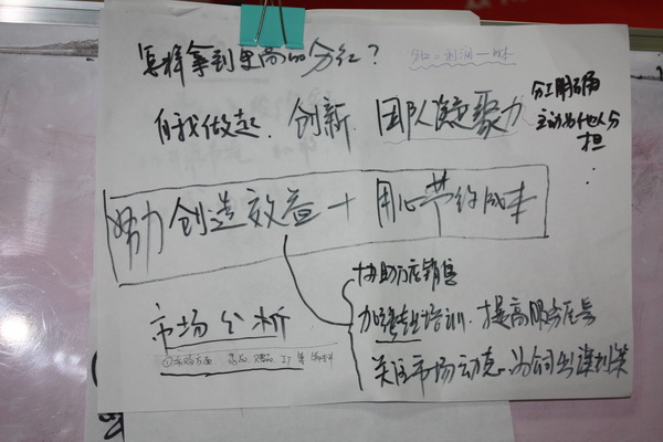 通过三个问题的认真讨论,每个小组派出了新闻发言人进行分析与讲解,大家的出发点都不谋而合,一切围绕“努力创造效益,用心节约成本”而展开。此次会议增强了大家的责任感,让大家能更积极的行使股东的责任,从自身做起,为企业的不断壮大添砖加瓦。