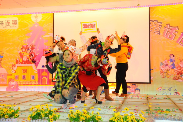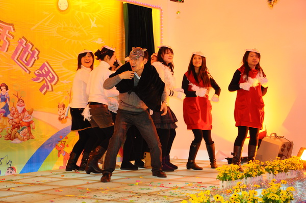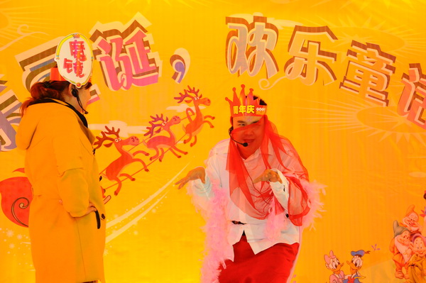欢乐童话世界在圣诞老人滑稽而搞笑的“企鹅舞”表演中拉开了帷幕,美少女战士、小红帽、蜡笔小新、樱桃小丸子、白雪公主、唐僧取经、灌篮高手、半夜鸡叫、叮当家族、喜羊羊与灰太狼等精彩童话故事悉数登场。在童话王国里,不管是60、70,还是80、90,各班的孩子们都使出自己的浑身解数,展现了绝顶的表演天赋,“包子版白雪公主”、“刘敏版皇后”、“冠希版白骨精”等形象更是深入人心。