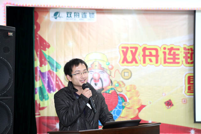 2012年1月13日下午,双舟连锁2011年第三季度投资经营者大会在总部大培训室圆满召开。本次经营者大会以“开源节流,增加收益”为主题,大会上,各部门均派出新闻发言人对这一主题进行了阐述与分享。13位发言人各抒己见,面面俱到。总经理易军先生也对大家的发言表示肯定与赞赏,并发表讲话。