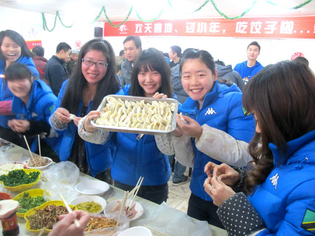 双舟卫视报道:1月15日,食堂总舵便派出“土猪砖家” 联系正宗农村家养土猪一头,并于当日宰杀到位运抵长沙市区。小年夜当天,由总部13大部门分组成的八个大食堂,强强联手,进行了包饺子大比拼,各大食堂均使出浑身解数,不仅饺子美味无比,更是大秀了一番厨艺,自制凉菜、营养靓汤、水果沙拉都博得了好吃评委团的大力赞赏,并现场评选出了最美味、最具创意、最具滋色饺子奖。