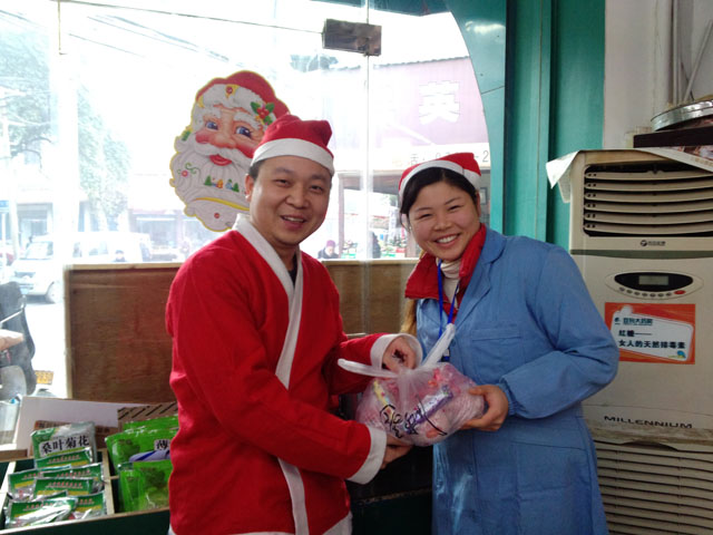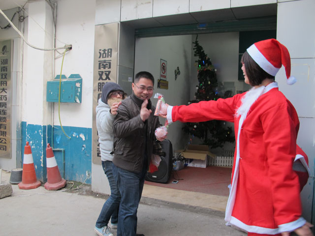 ,平安夜,圣诞老人开始奔忙于门店和总部,为双舟的同仁们送礼物咯!爱家的宝贝们接过圣诞老人的礼物心里美滋滋的,快快乐乐的!