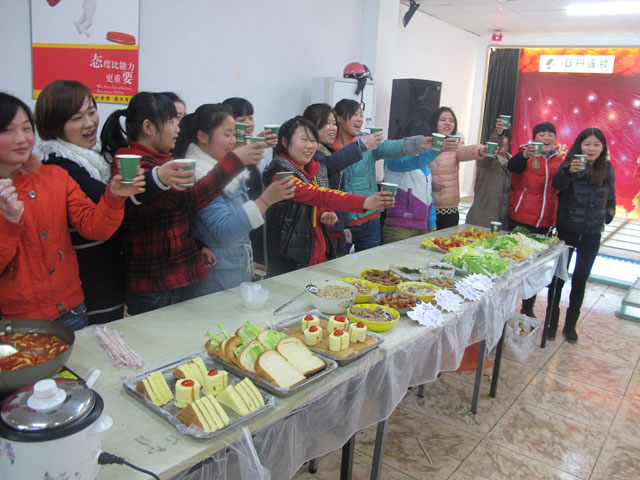 聚能队、钱进队、战神队、雄霸队的片区宝贝们组织了包饺子活动,姐妹们包起饺子来可谓是干劲十足!包出来的饺子各有特色,吃起饺子更是“争先恐后”,不顾形象;中国队、河西队的片区宝贝们组织了自助餐活动,一声“开始”口令下,宝贝们不顾三七二十一卷起袖子就动手大干起来,不一会儿各店的丰盛大餐就出炉啦!姐妹们迫不及待的拿着碗筷相互串门,品味各色美食;龙威队、精英队的片区宝贝们组织了游乐会活动,不仅动手、动脑,还可以拿奖品,更是乐的姐妹们合不拢嘴啊!