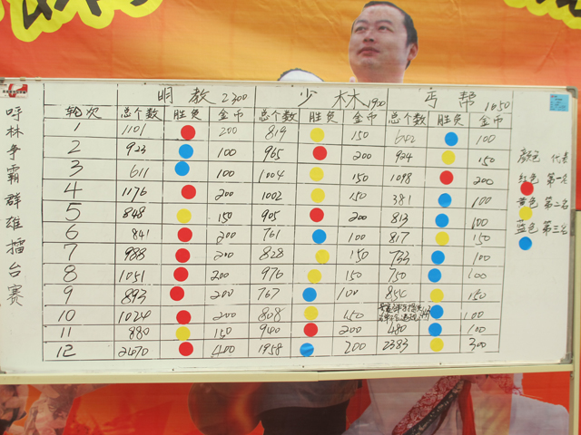 经过轮番大战,诺舟呼林“内功最为深厚”的“明教”以12局8胜的绝对优势成为擂主,少林、丐帮虽然实力稍稍落后,但在用人策略上却毫不示弱,也都是满载“金币”而归。