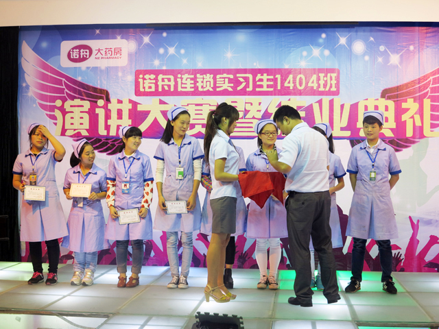 1404班演讲大赛暨结业典礼上,12位选手站上了演讲大赛的舞台和小伙伴们分享了她们成长故事;共有24名同学顺利结业,22名同学凭借优异的学习成绩,优秀的门店实习表现成功晋级为见习健康顾问。