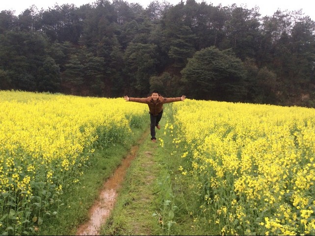 天空作美下起了蒙蒙细雨,更添一份意境。在阳光与微雨的抚摸下,油菜花田传来一波又一波的光亮,照在我们的脸上,照亮我们的约定。