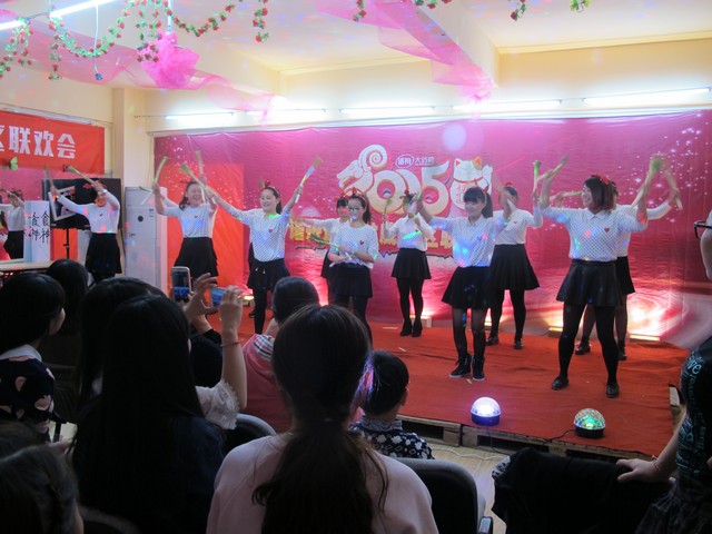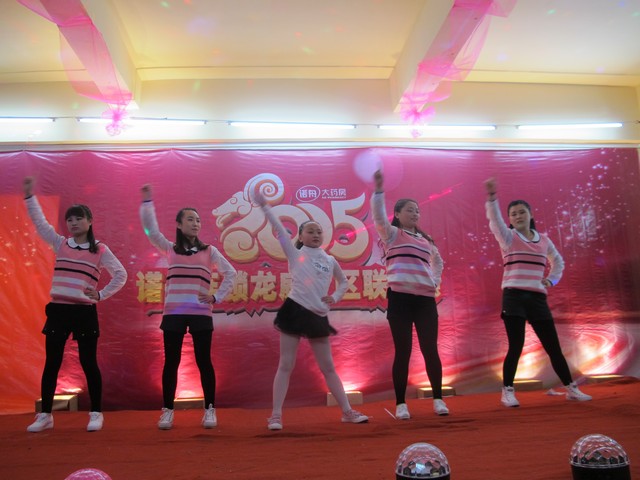 联欢会以朝阳店活力动感舞蹈《向快乐出发》拉开帷幕,侯家塘、井湾子店的《NO.9》、广济桥的《甩葱舞》、新开铺店的《舞蹈串烧》、侯家塘店的《小苹果》等,劲歌热舞让现场气氛Hi到顶点,书院南路和冬瓜山店的两个小品,夸张的表演,让人忍俊不禁。红旗药号的可爱舞蹈《三只小熊》因为有两个小朋友的加入,而更显活泼可爱。新开路、复兴街、附二店的手语舞表演为联欢会增添了一抹励志的色彩。附二店的《环保时装秀》报纸垃圾袋制作的美丽时装,让我们领略了什么叫化腐朽为神奇,联欢会还穿插了竞猜游戏,为整台联欢会增添了更多的欢乐。