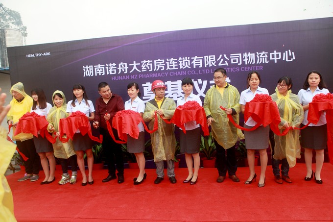 新配送中心位于泉塘冲路以南,岳麓区麓谷街道绕城高速西侧,建筑面积达2万平方米,计划农历十二月前完成主体建设,为公司明年迈向一个新台阶创造条件。开工剪彩仪式上,总经理易军致辞,简单回顾了公司发展的几个重要阶段,讲述了配送基地的建设对公司发展的重要意义。