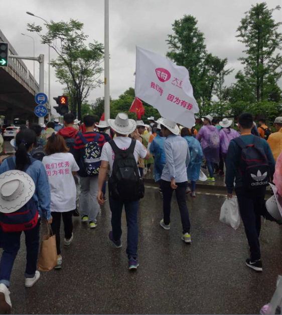 斗志昂扬,毅行者们一路放声高歌到达签到点
