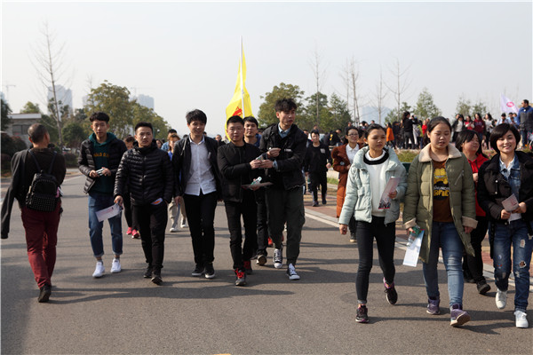 迎着微风、暖阳,伴着音乐,队伍浩浩荡荡的出发了。