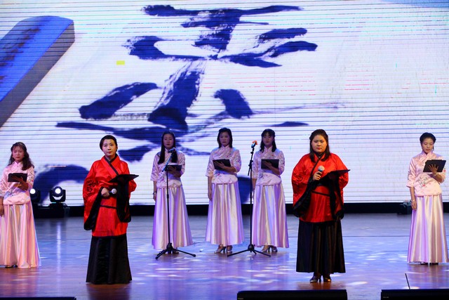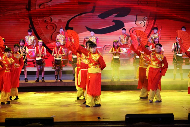 有着浓浓家国情怀的诗朗诵配合书法表演、歌舞《国家》、大型鼓舞《精忠报国》,让我们内心洋溢着浓浓的爱国情怀和民族自豪感。