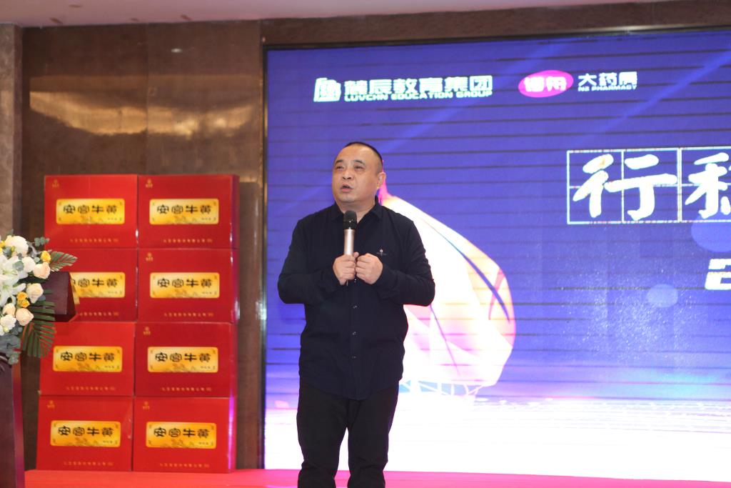 麓辰教育集团董事长易军总发表讲话,他指出:对加盟板块重新定位、全新启航。未来,也将举全公司之力,为加盟店创效益。他宣布:诺舟连锁与九芝堂战略合作正式启动!
